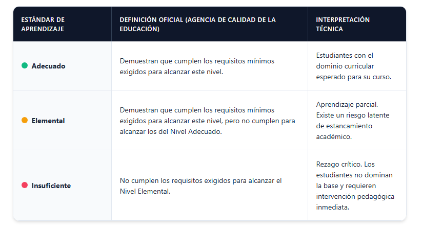 Es imperativo no caer en la complacencia de las comparativas generales. La Agencia de Calidad es clara: la gestión directiva es un motor del aprendizaje solo cuando el equipo utiliza activamente los resultados para identificar brechas. Ignorar caídas de dos dígitos bajo el pretexto de promedios nacionales favorables contravendría el principio de mejora continua que el Estado exige a los sostenedores